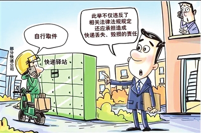 近日,消费者“双十一”购买的商品陆续发货,但部分配送员在快递包裹抵达时,以各种理由拒绝配送上门或直接交付到代收点。律师表示,此举不仅违反了相关法律法规规定,还应承担造成快递丢失、毁损的责任。 王鹏/作