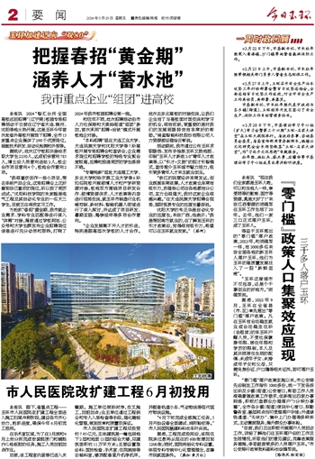 据悉,工程完成投用后,该院住院床位数将从现在的600张增加到1200张;同时,医院将细化专科设置,体现专科专病中心化管理理念,改善市民就医条件。 (龚松 黄月红)