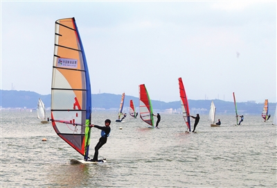 连日来,在玉环市漩门三期帆船帆板训练基地,市少年儿童业余体校的学生扬帆逐浪,备战今年的浙江省帆船帆板锦标赛和冠军赛。吴达夫 摄