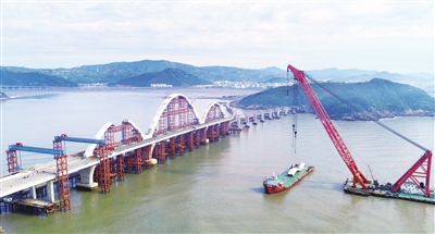 晴好天气施工忙。西沙门大桥项目建设者们铆足干劲,加紧施工,确保项目按照时间节点推进。西沙门大桥是台州1号公路玉环段的重要节点,以“玉带环飘、文旦其中”的造型,打造出独特的地标建筑。 吴达夫 摄