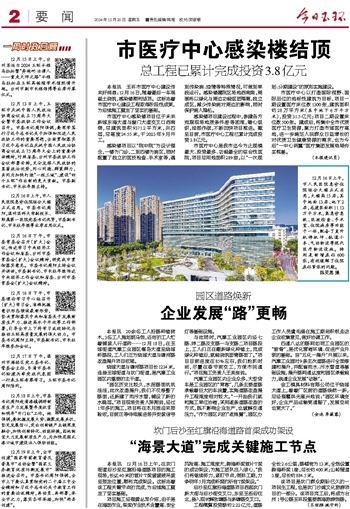 本报讯 玉环市医疗中心建设传来好消息:12月16日,随着最后一车混凝土浇筑,感染楼顺利结顶。这标志着市医疗中心建设工程取得阶段性成果,为后续施工奠定了坚实的基础。