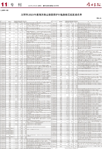 玉环市2023年度海洋渔业资源养护补贴复核后拟发放名单