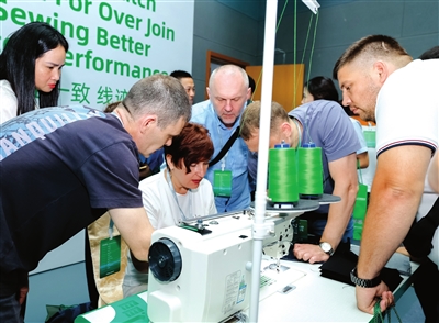 在新品体验区,代理商刘先生使用“线迹大师”智慧平缝机重复缝纫后,点赞说:“和以前的机器相比,声音更轻,走线确实很直很漂亮,相信会受到市场欢迎。”